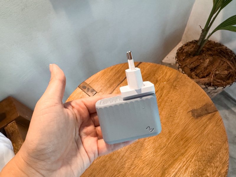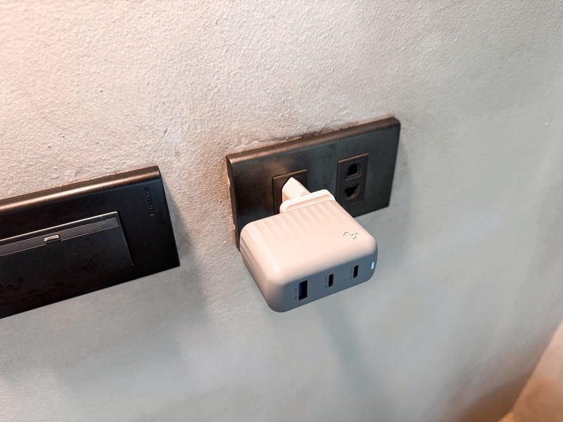 它的亮點就是 1A2C 三孔設計,同時幫我筆電、手機和耳機上電完全沒問題,而且充電速度快得很誇張,官方實測數據是28 分鐘就能把手機從 1% 衝到 50%!這在旅行途中真的很重要,因為我不可能每天都乖乖待在房間等充電,很多時候都是「行李還沒整理好就要出門」;快充讓我能邊刷牙邊收拾,回頭一看手機已經回血大半,超有安全感~