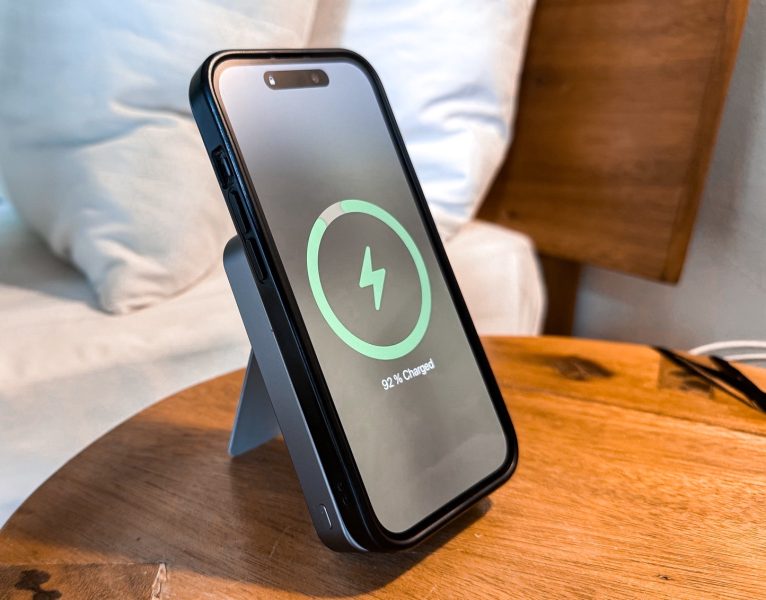 最讓我驚喜的是它支援最新的 Qi2 認證, iPhone 能達到 15W 無線快充,比以前快一倍!!