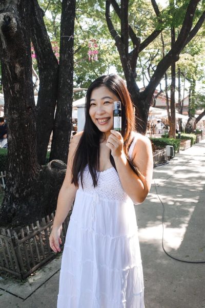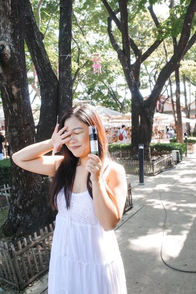 因為是細霧設計,噴起來不會濕濕的,也不會黏在皮膚或衣服上,所以我們四個人根本一路狂用!早上在咖啡館等早餐時,我會先噴在手腕附近,草本味混著咖啡香,整個人會慢慢醒過來;到了寺廟前停下腳步調整帽子、綁頭髮、拍照,這時候再噴一下,乾淨的香味會讓人覺得整個狀態都被整理好了。