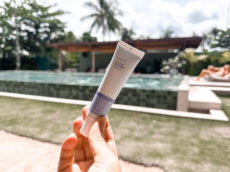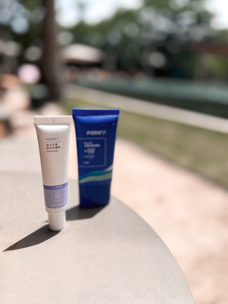 第一次看到這個系列時,我就覺得「高係數的戶外活動防曬居然也能像底妝一樣挑色」,滿有趣的!而且如果你不知道怎麼選,還可以透過線上去測試,最後我被推薦了紫色,因為我皮膚底色就是偏蠟黃;加上旅行時又討厭上厚重底妝,所以紫色剛好能自然提亮,讓臉色更清爽透亮。