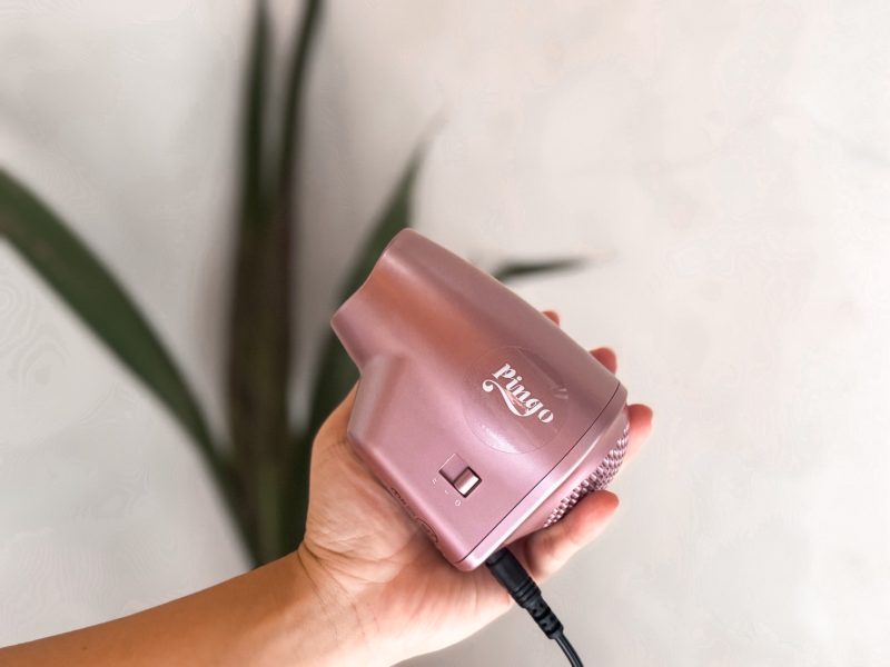 Pingo Qmini 2.0 設計很簡約,重量只有 225g,拿在手上幾乎沒有負擔,是”真”一手掌握!吹嘴部分採用蜂巢結構,機身有一點霧面金屬感,看起來質感滿滿,完全不像一般笨重吹風機~還有一點我很喜歡!就是它有 奈米銀離子塗層,除了抗菌還能去除異味,長時間旅行在潮濕浴室用起來安心感滿分。