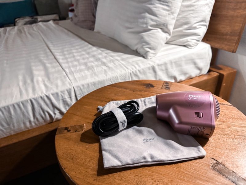 在蝦膏島的日子裡,我每天都要面對「洗頭髮」的挑戰!白天在海裡玩,每次回到旅館時頭髮不是鹹鹹的就是整個打結,晚上逛完夜市回到旅館,身上滿是烤魚和炸香蕉的味道;一天幾乎都要洗兩次頭的日子,真的是還好我有帶著Pingo Qmini 2.0!不到半小時就吹乾,頭髮還意外柔順服貼,終於不用再跟那種弱到不行的旅館吹風機奮戰,也不會擔心吹到一半過熱自動斷電的困擾!